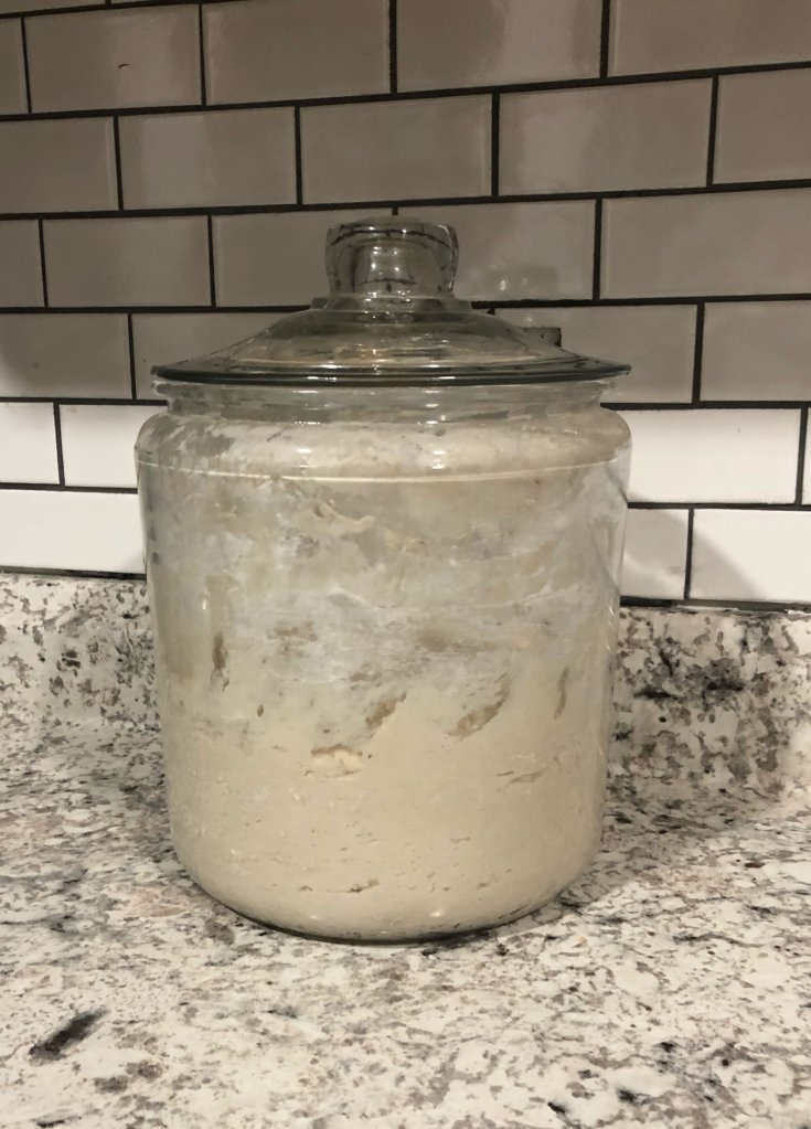 Now let your dough sit out on your counter for 2-3 hours. It will double in size then fall back down. Stick it in your fridge overnight. It is ready to use at this point, but for better flavor I recommend letting it set 72 hours before using.